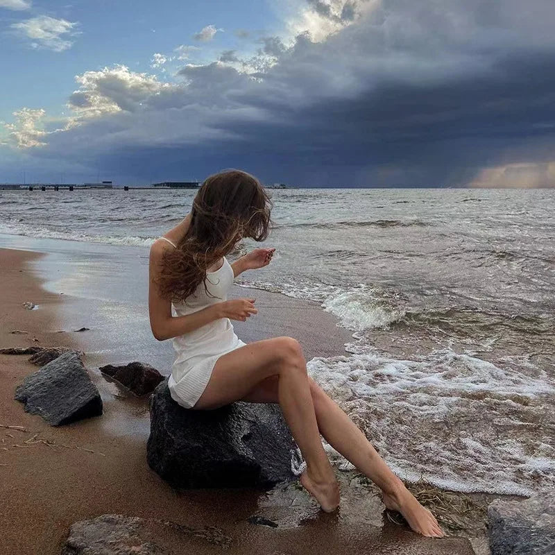 Basic Dress for Women White Spaghetti Strap Sleeveless A Line Mini Dresses y2k Clothes 2000s Aesthetic Dress Beach Wear