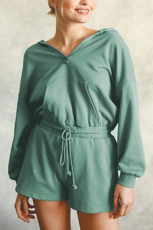 Blue French Terry Hoodie Two Piece Shorts Set
