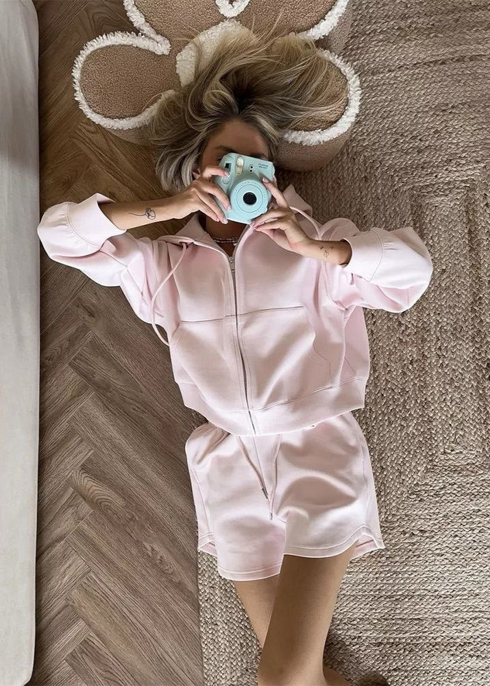 Blush Ease - Zip-Up Hoodie & Lounge Shorts Set