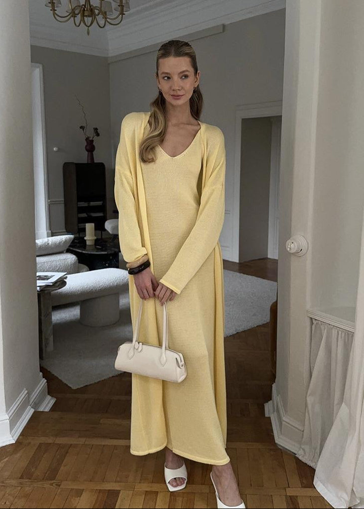 Blush Lure - Knit Maxi Dress with Cardigan Set