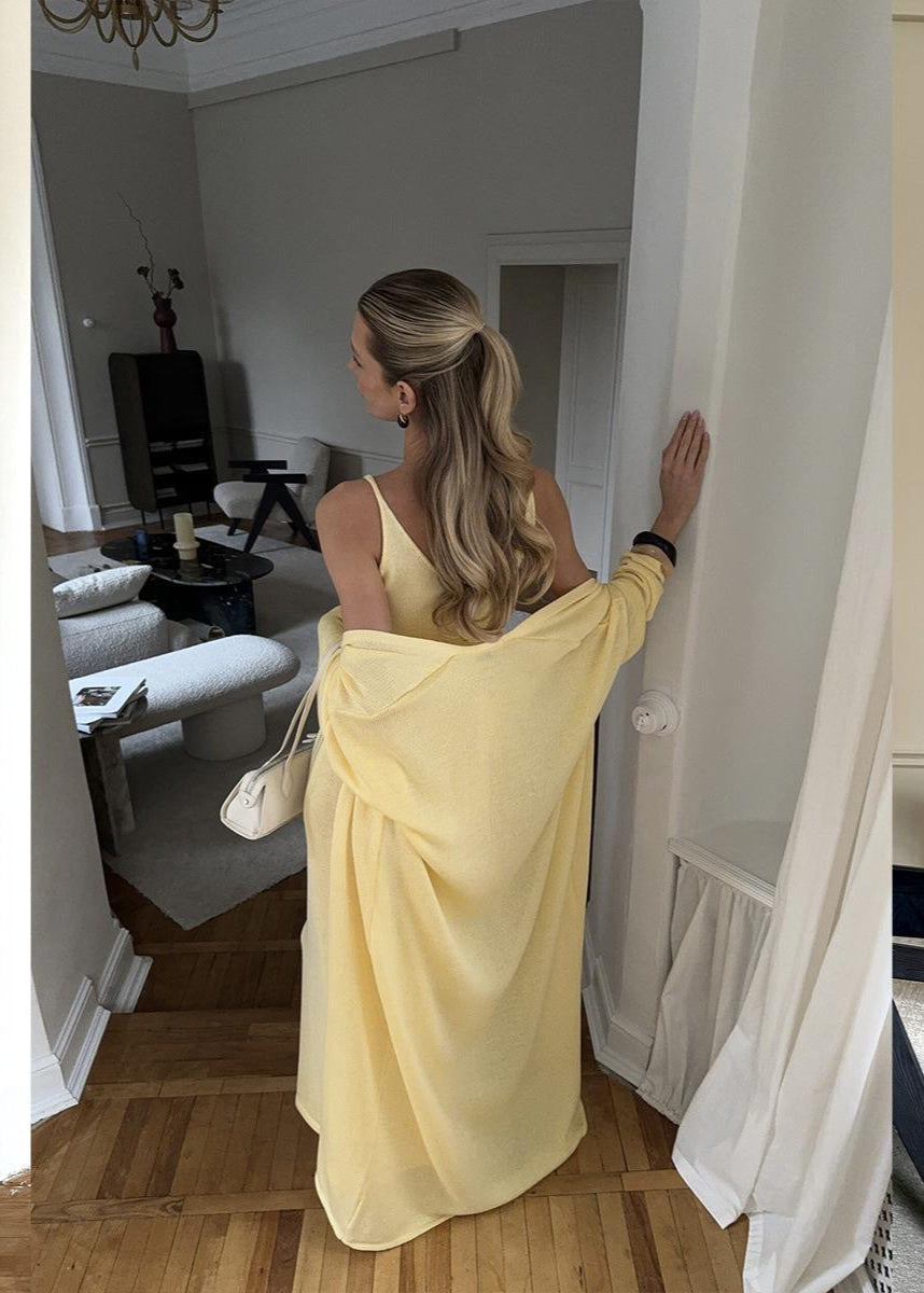Whether worn together or separately, this blush yellow combo delivers comfort and understated charm. Ideal for spring brunches, soft evenings, or lounging in elevated style.