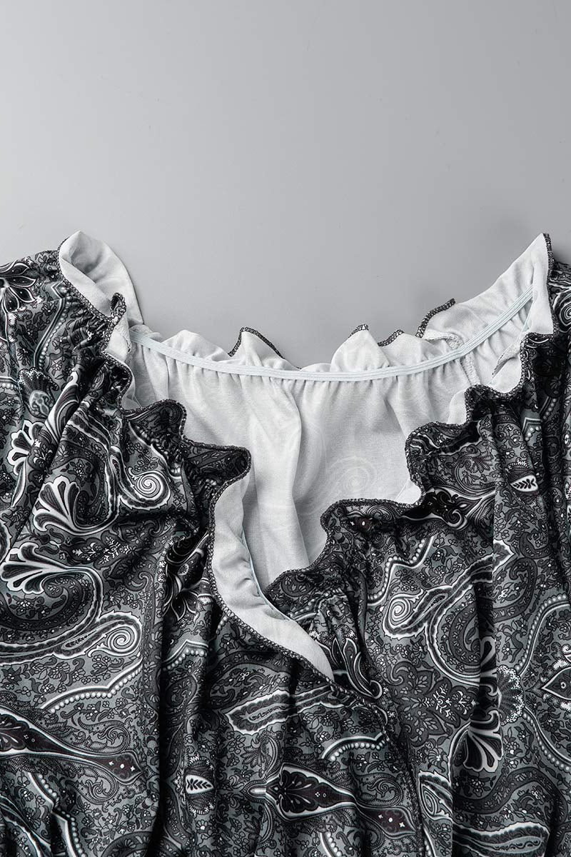 Bohemian College Print Fold V Neck A Line Dresses(6 Colors)