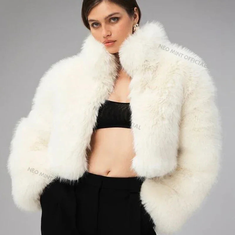 Brand Iconic Fashion Kendall Jenner Snow White Fox Fur Jacket Women Winter Fluffy Warm Faux Fur Coat Girls Streetwear