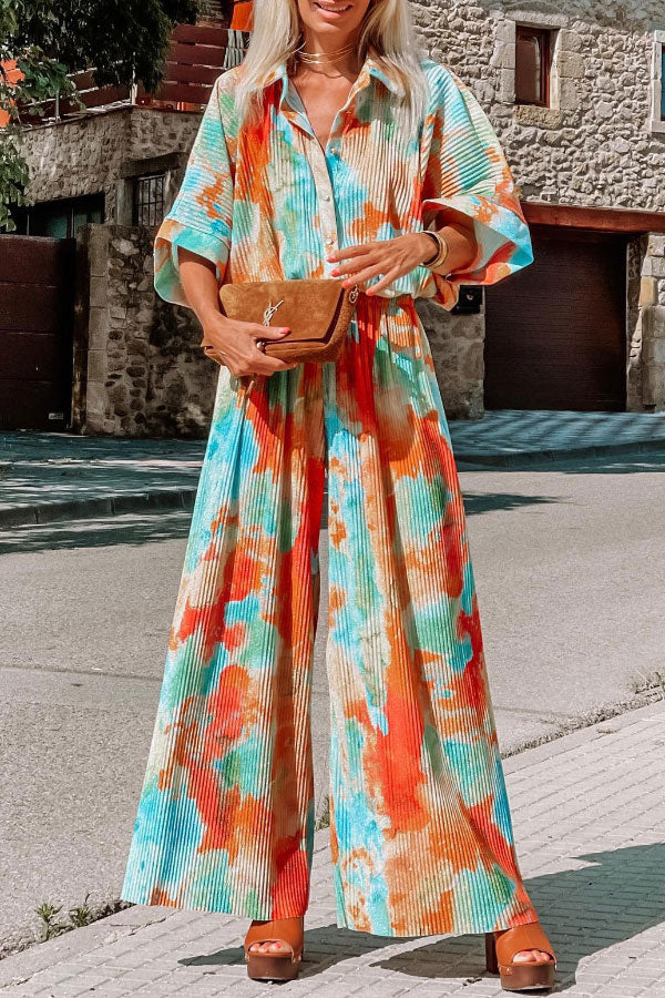 Casual Blooming Loose Waist Wide-leg Jumpsuit