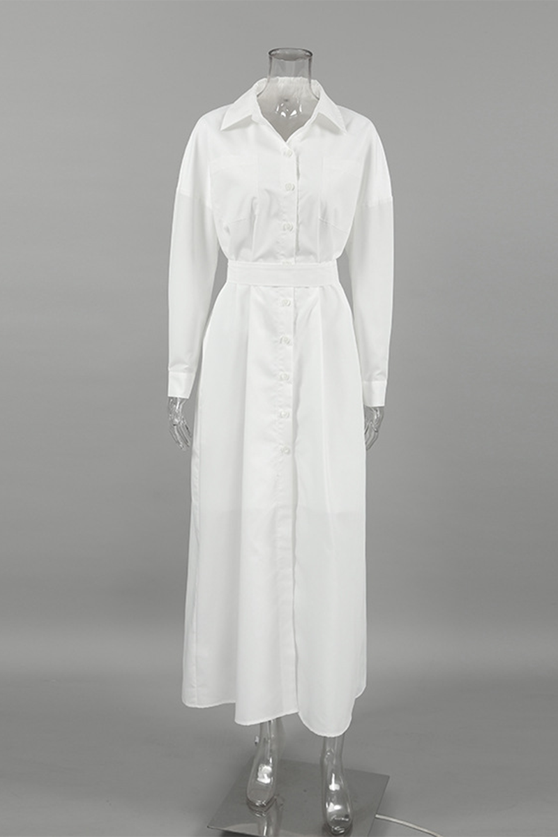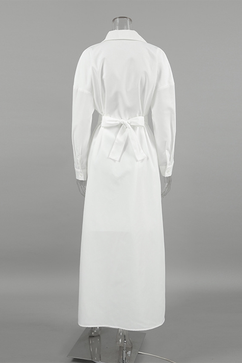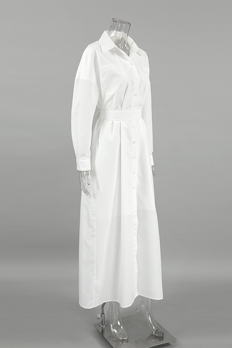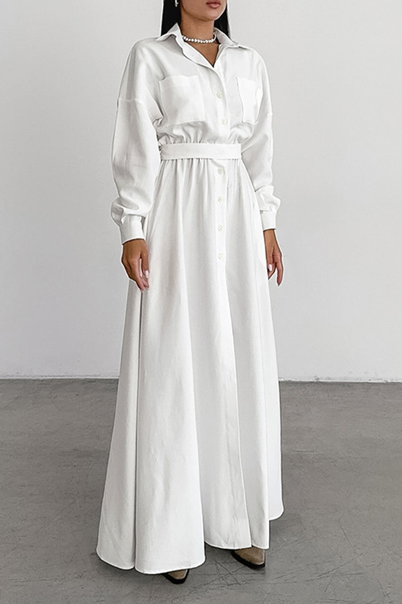 Casual Lace Up Buttons Turndown Collar Shirt Dresses