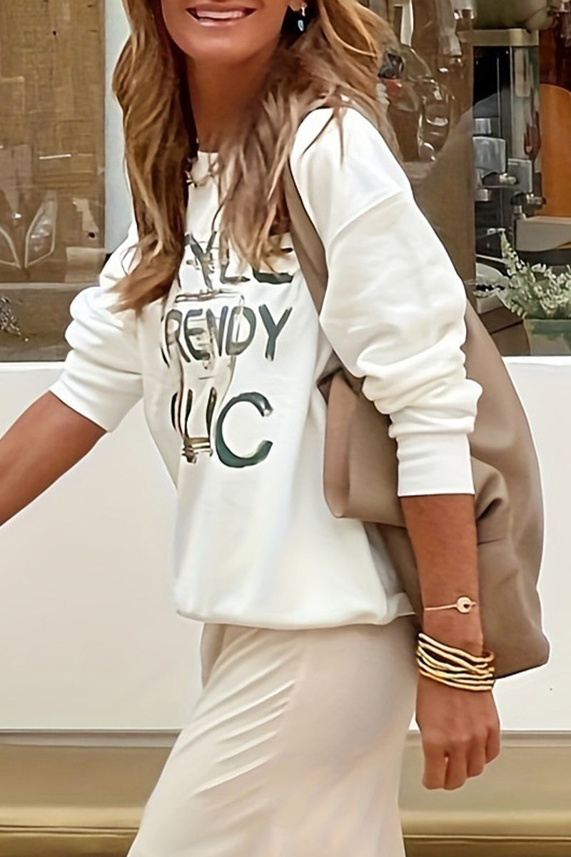 Casual Letter Printing O Neck Tops