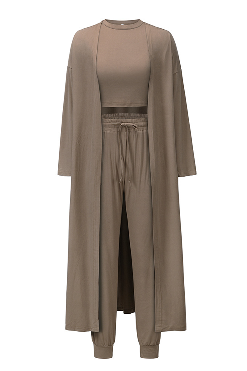Casual Solid Patchwork O Neck Long Sleeve Three Pieces(4 Colors)
