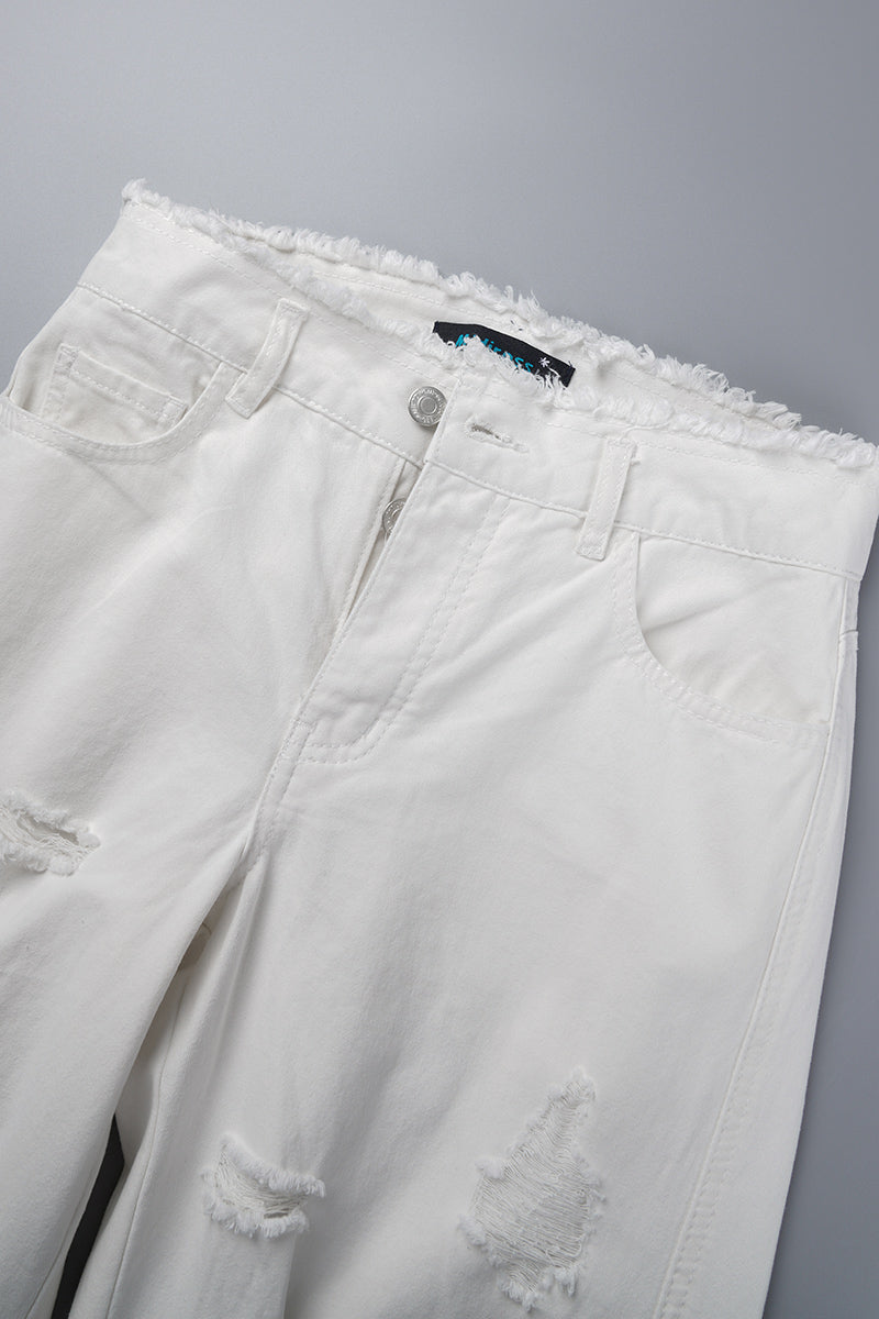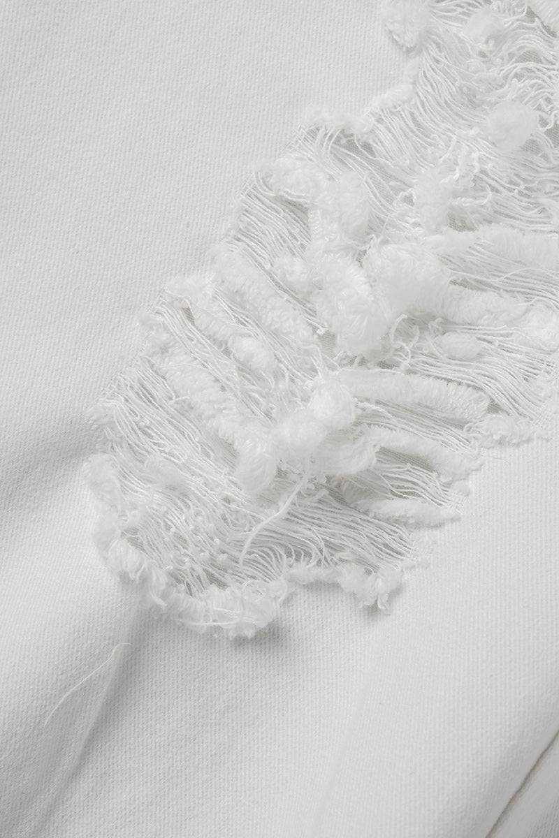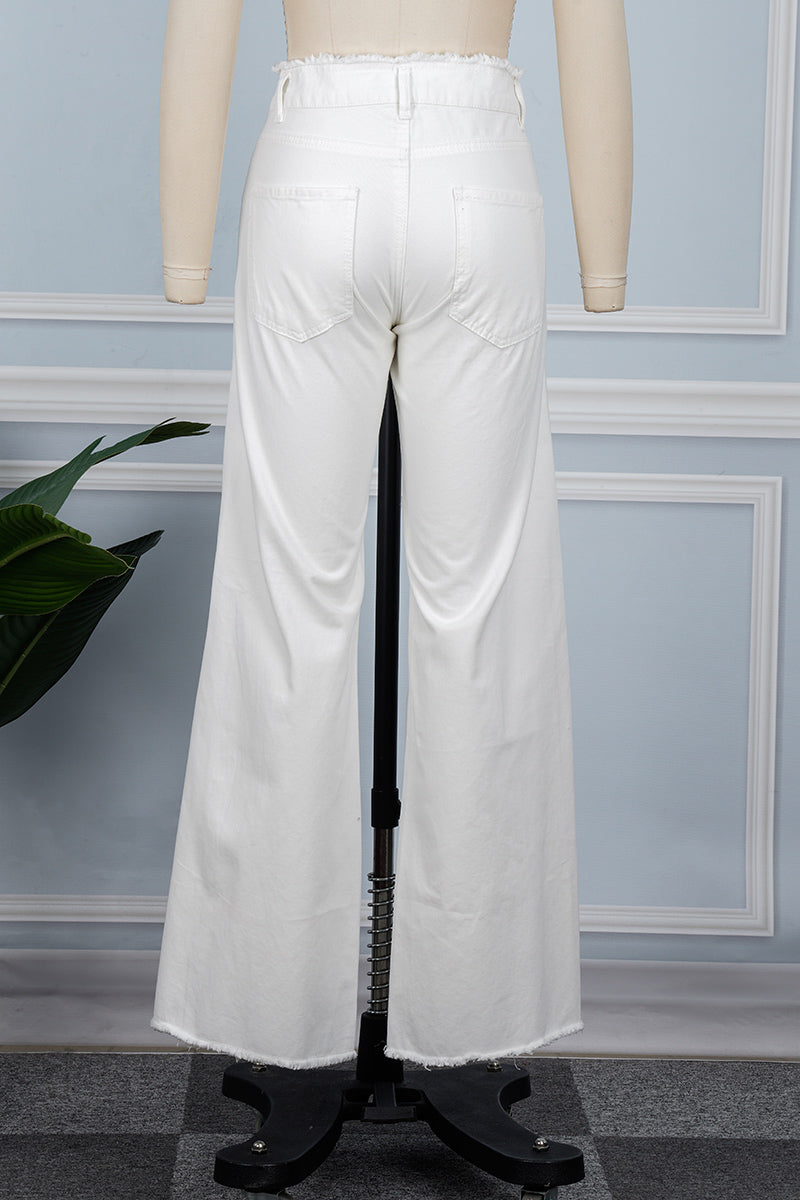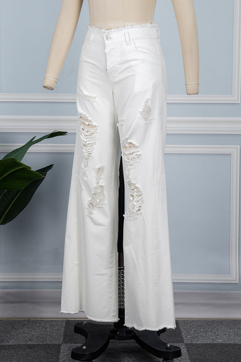 Casual Solid Ripped Patchwork Mid Waist Regular Denim Jeans (Subject To The Actual Object)(5 Colors)