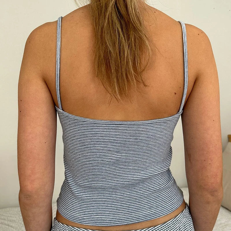 Casual Striped Loungwear Lace Trim V Neck Sleeveless Camis Crop Tops + Shorts Kawaii Pajamas 2 Piece Set Women Y2K Retro Outfits