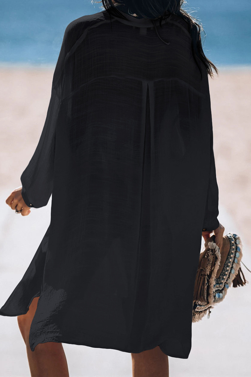 Casual Vacation Solid Color Buckle See-Through Swimwears Cover Up(5 Colors)