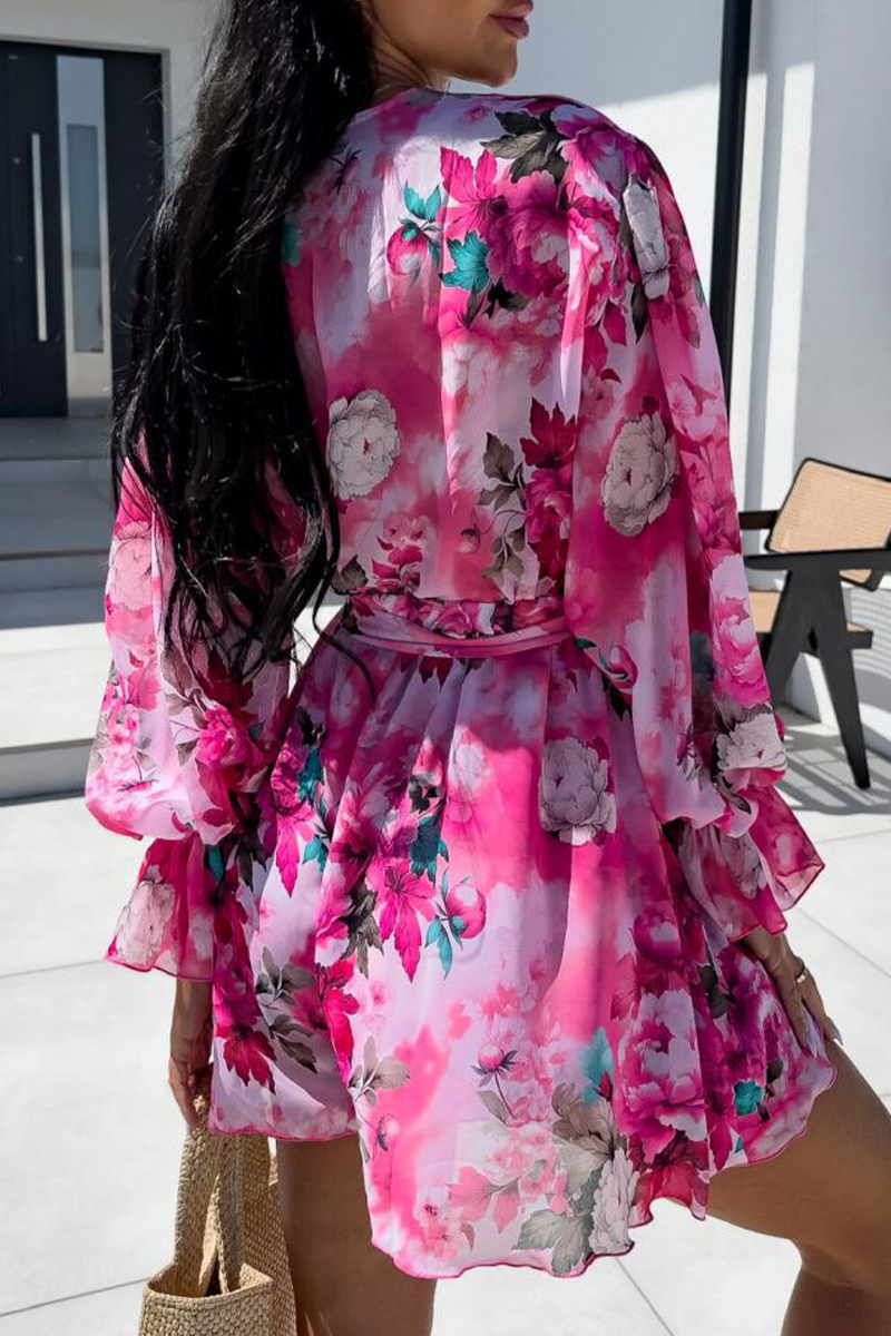 Casual Vacation Zebra Print Flowers Lace Up Contrast V Neck Loose Rompers(3 Colors)