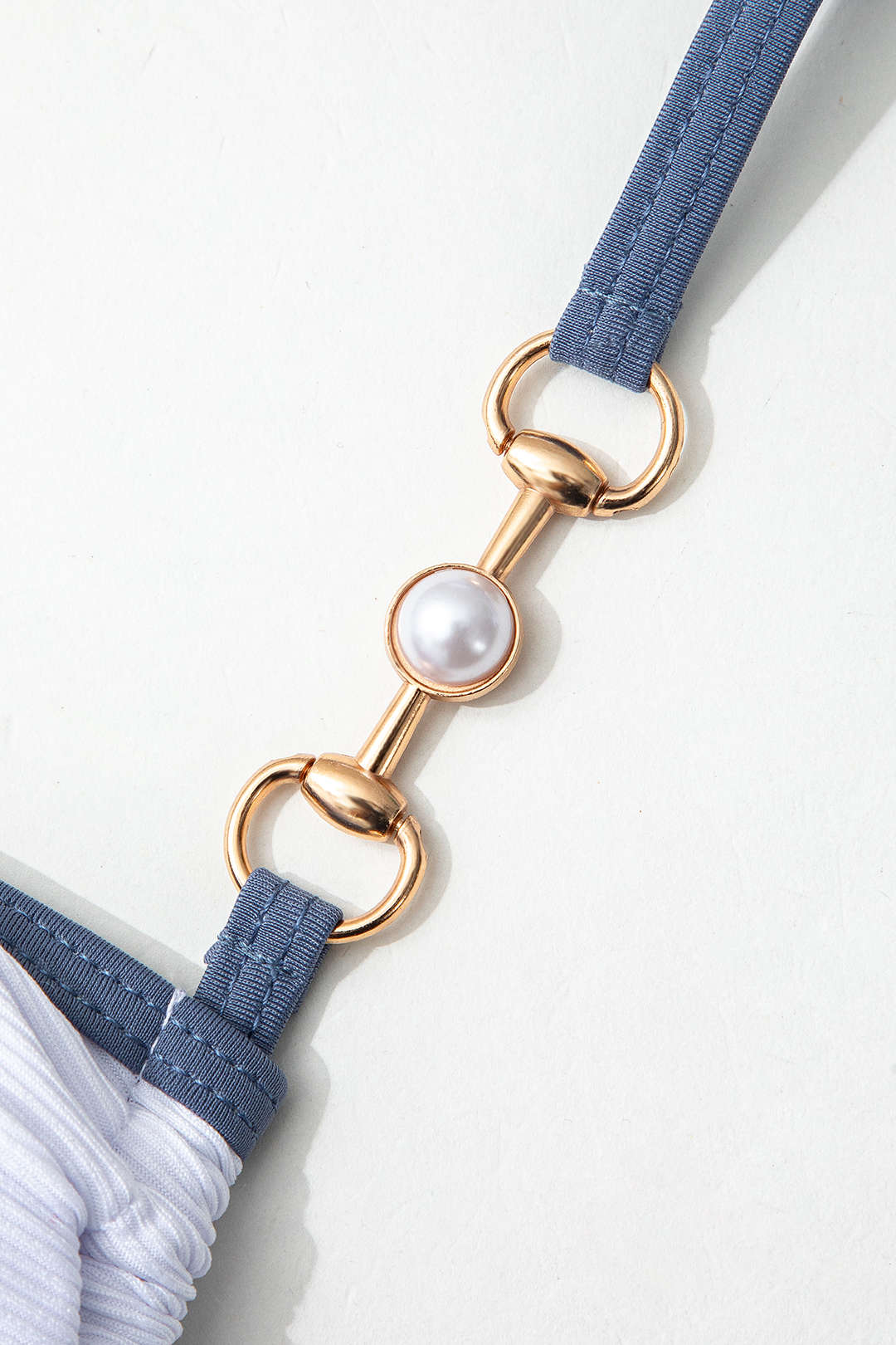 Contrast Vintage Pearl Detail Halter 2 Piece Bikini Set