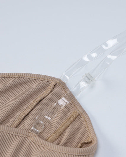 Eco Friendly Suspender Wrapped Chest Pit Strip Knitted Casual Jumpsuit