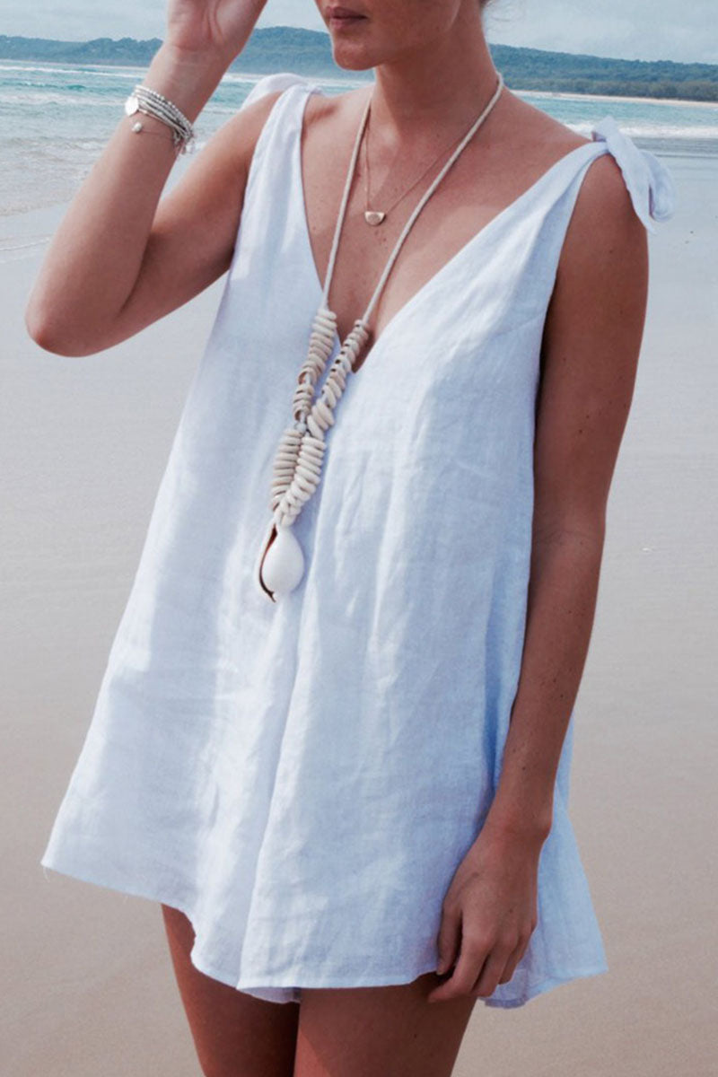 Fashion Casual Solid Frenulum V Neck Loose Rompers