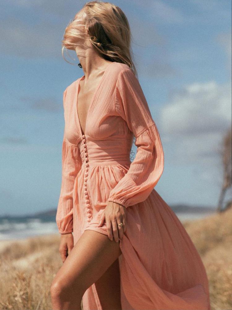 Giselle V-neck Plisse Maxi Milkmaid Dress
