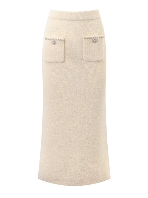 Glitter Knit 2 Piece-Set Long Skirt Women Patchwork Elegant Luxury Fashion Gown Outfits Knitwear Ladies Maxi Skirt Sets