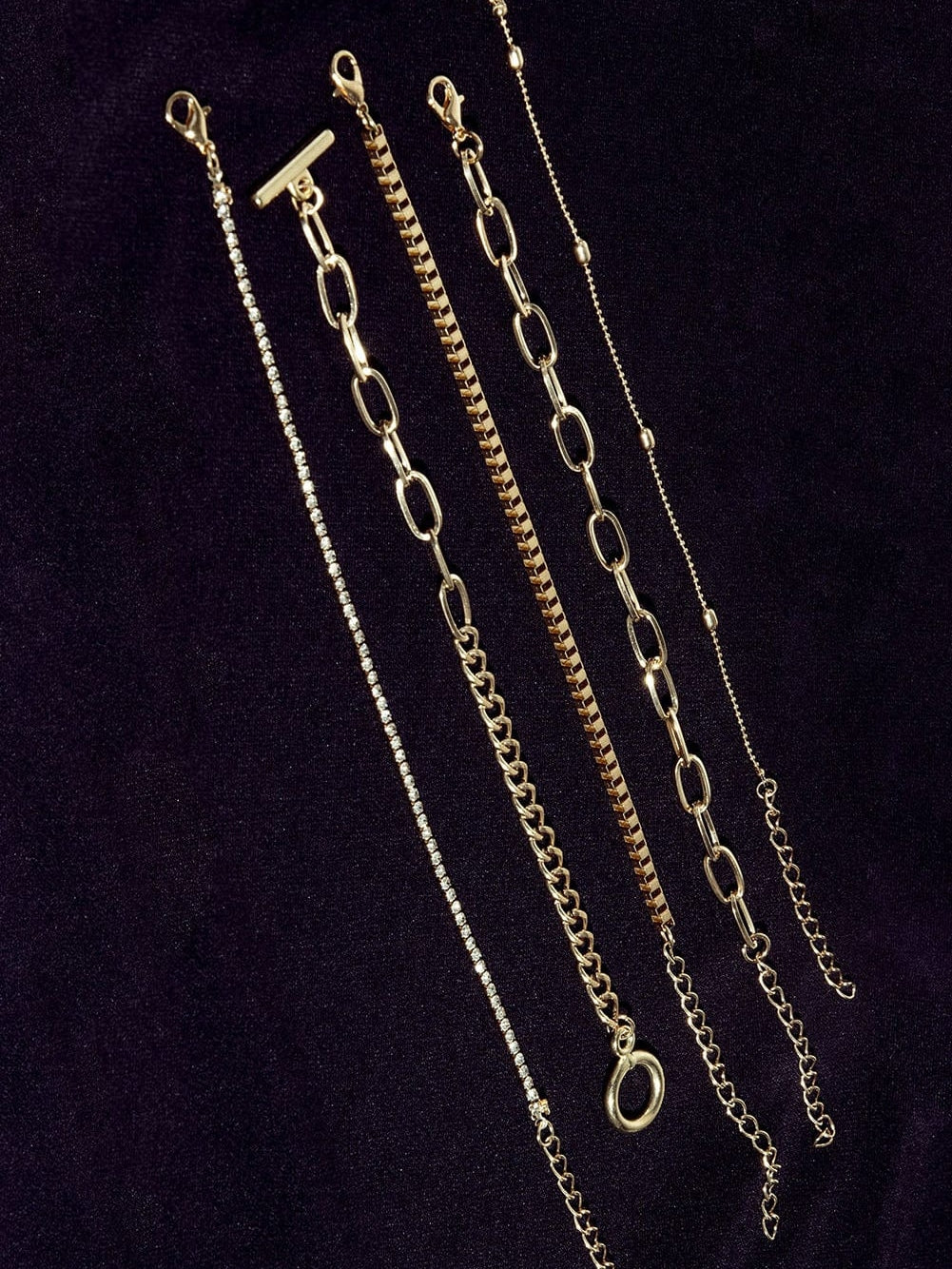 Gold Rhinestone Geometric 5-pcs Bracelet Set