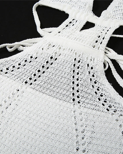 Halter Neck Sexy Open Back Hollow Slim Fit Knitted Dress