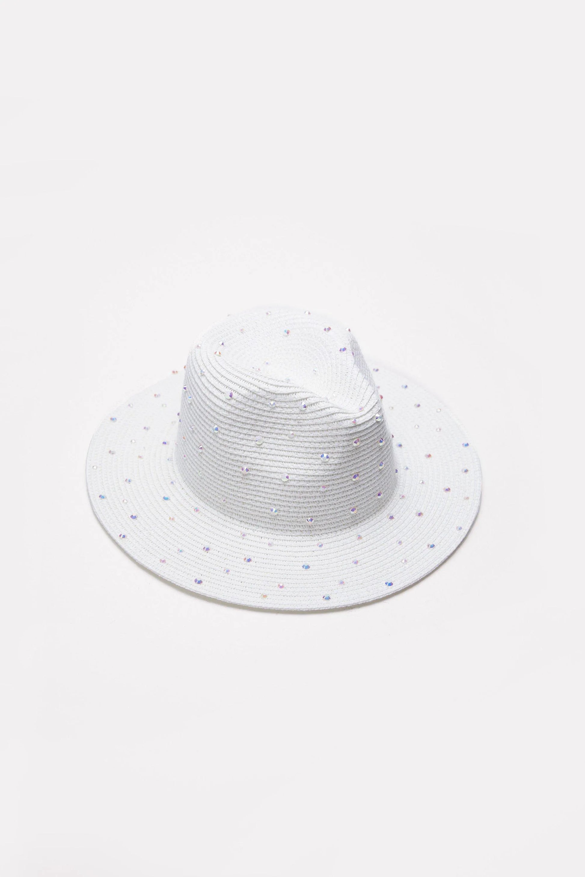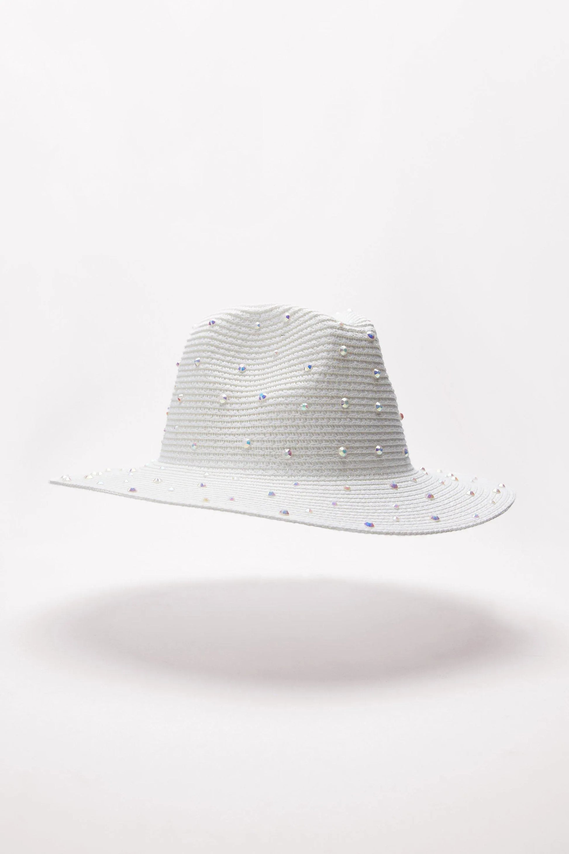Hopeful Moments White Pearl Raffia Fedora Hat
