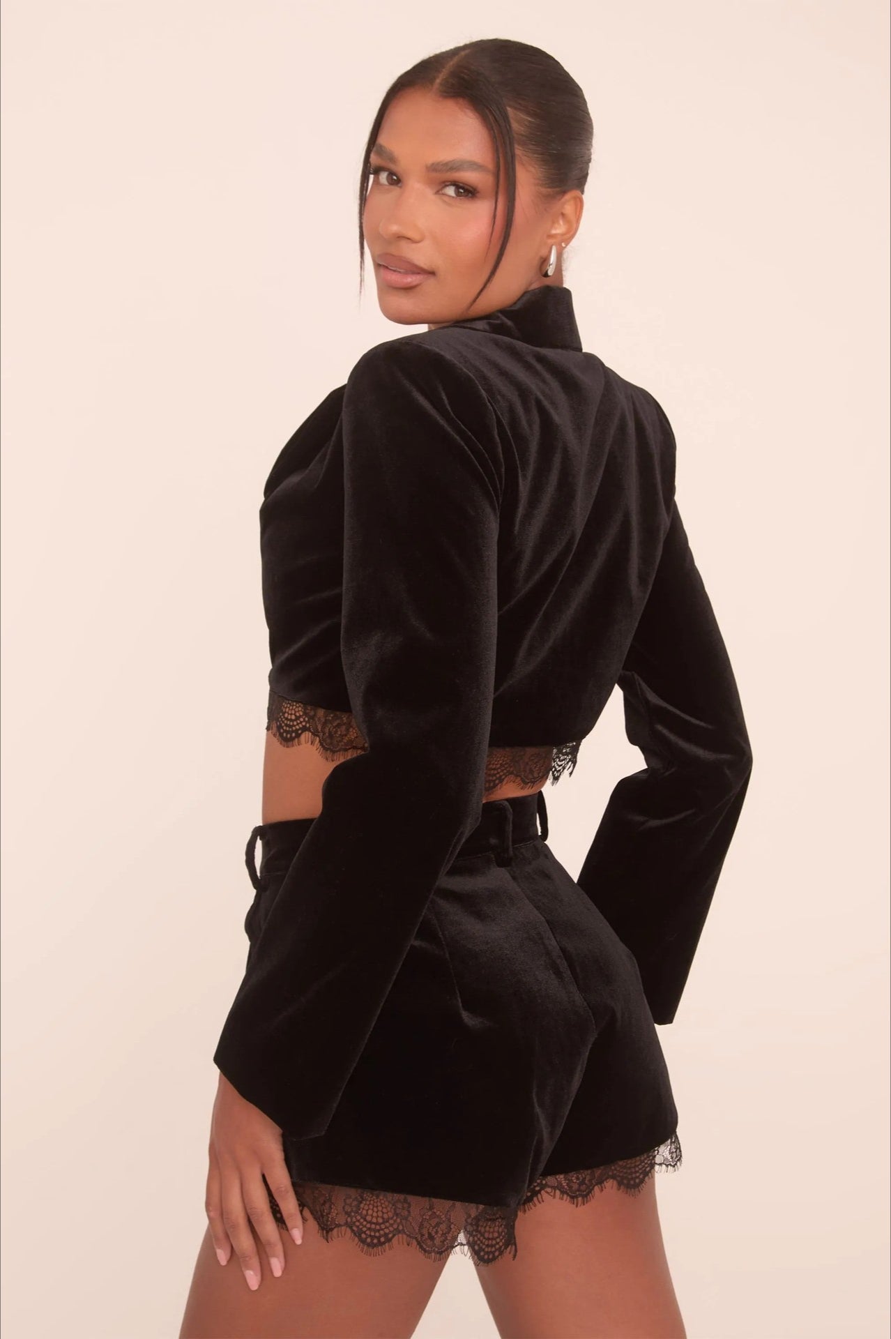 Lace Trim Crop Top High-Waisted Shorts Two Pieces Set