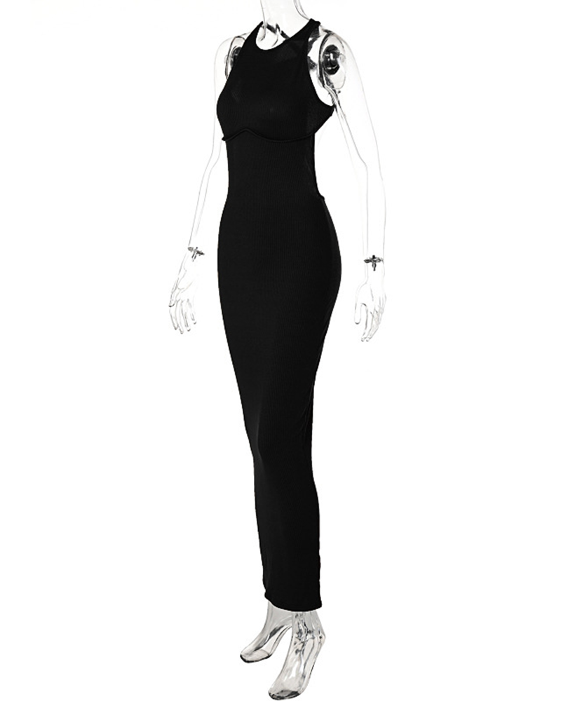 Long Sleeveless Openback Slim Dress