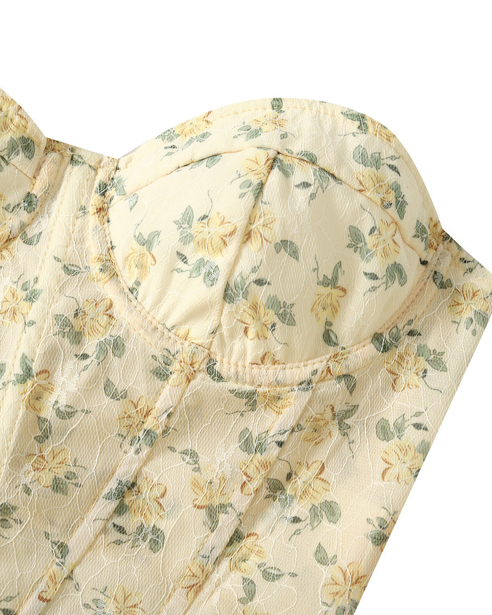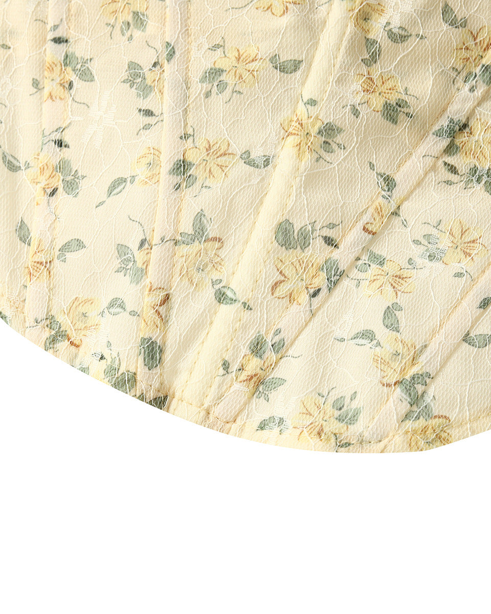 Mesh See-Through Rhombus Chest-Wrapping Steel Ring Fishbone Corset
