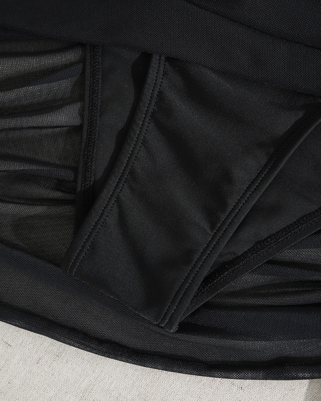 Mesh Splicing Drawstring One-Piece Bikini Swimsuit