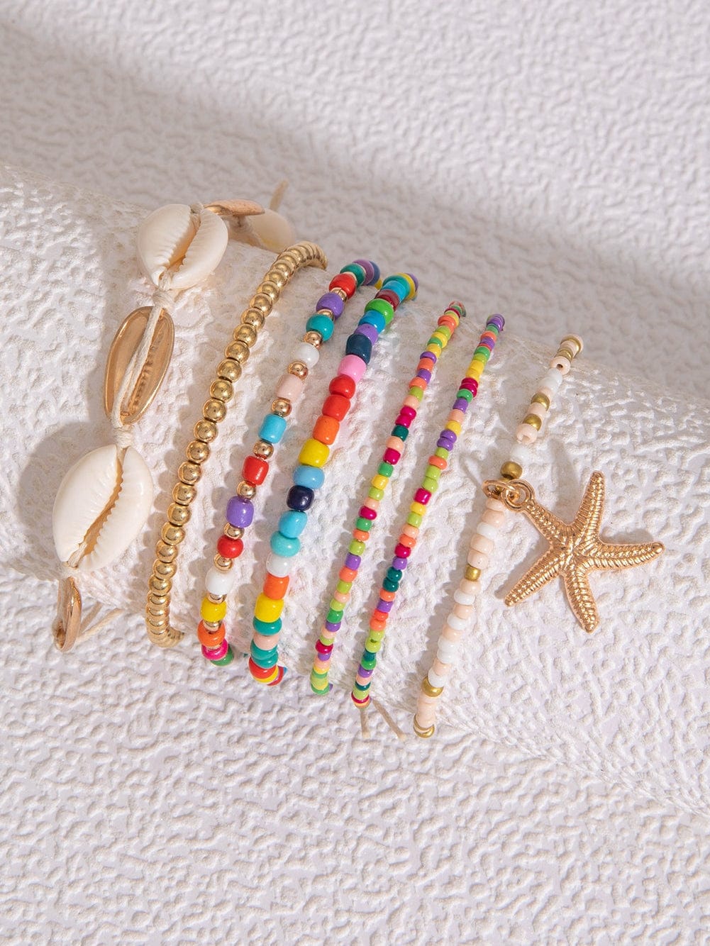 Multicolour 7pcs Starfish Seashell Beaded Bracelet Set