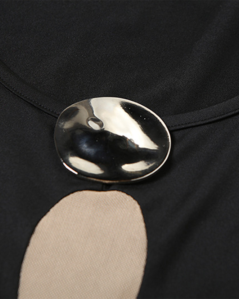 Net Yarn Put Together V Neck Slim Bag Hip Dress