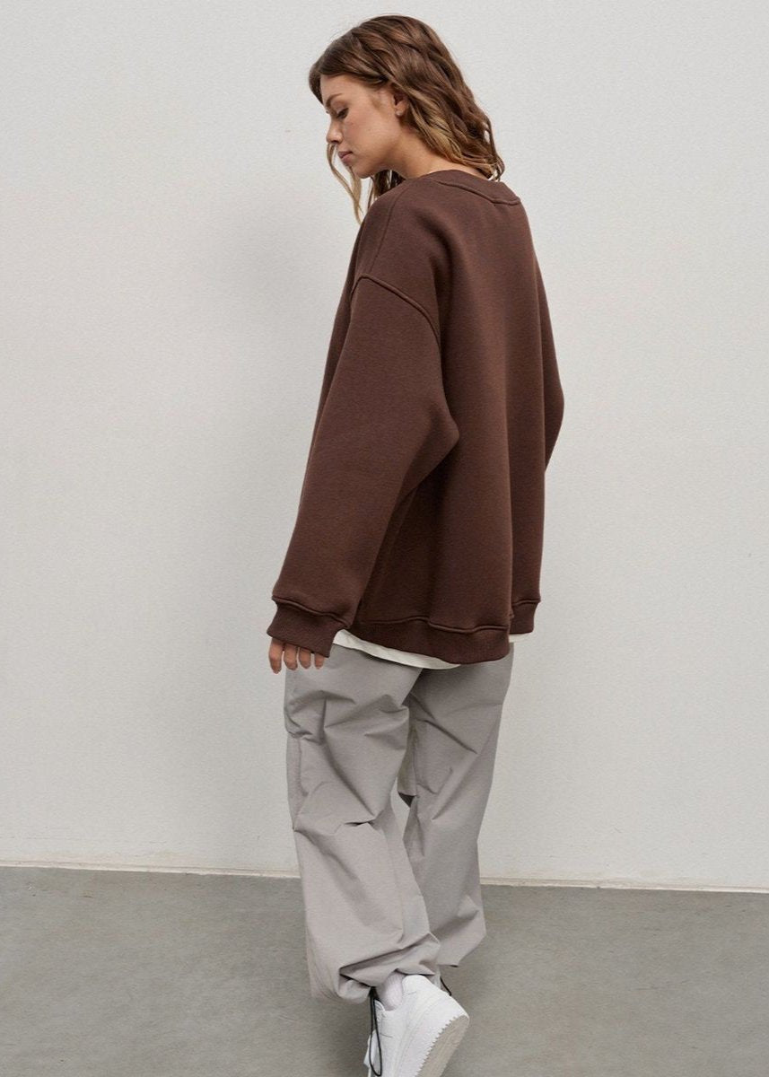 This oversized navy sweatshirt combines classic style with relaxed comfort. Made from a premium cotton blend, it features a loose fit and dropped shoulders, making it a versatile staple for casual layering. The deep navy hue is effortlessly chic, pairing perfectly with jeans, joggers, or cargo pants. Whether you're lounging or heading out, this sweatshirt delivers on both comfort and understated style.