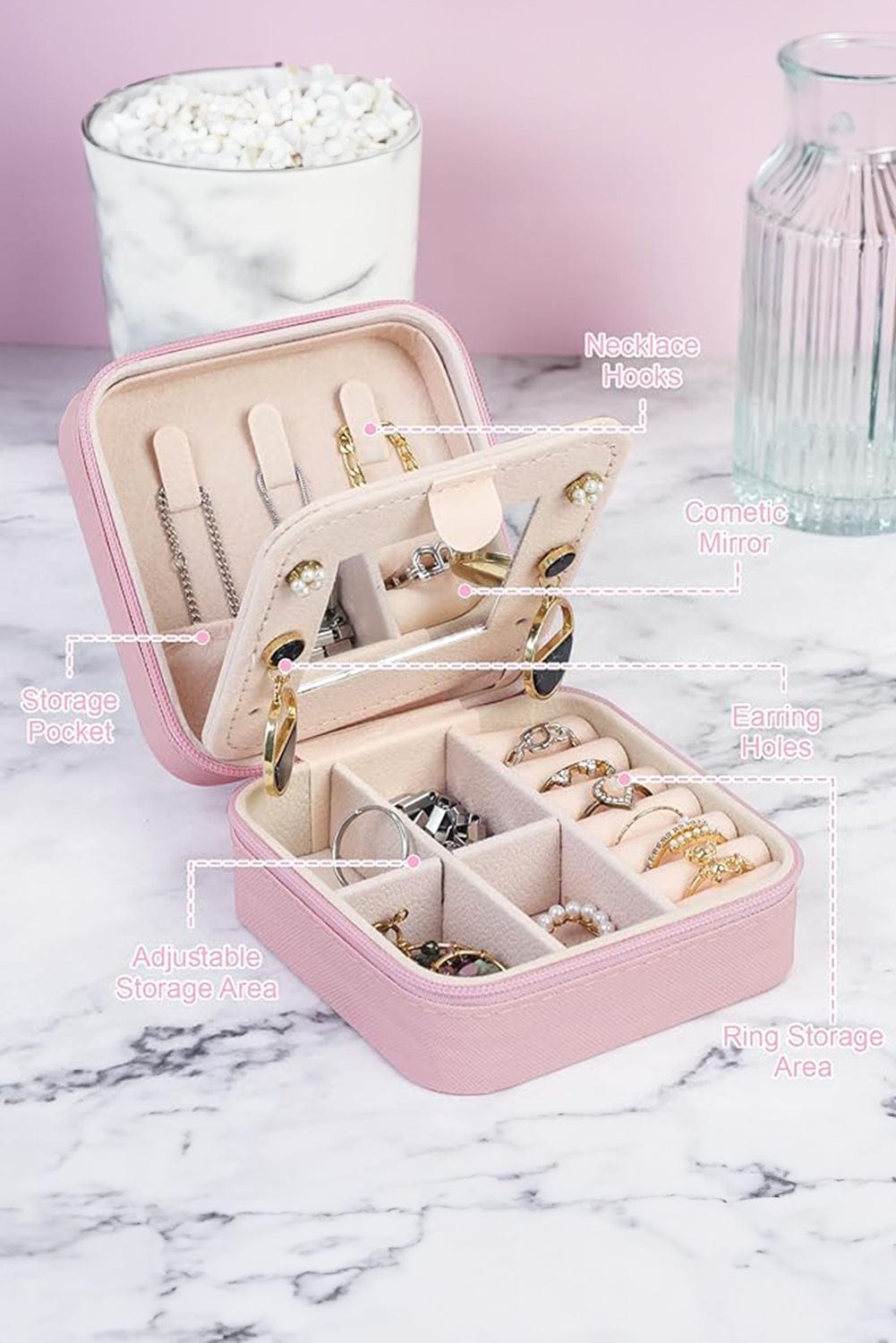 Carry your precious jewelry in style with the Pink Portable Initial Jewelry Box. This mini jewelry box is not only functional but also a fashionable accessory for any jewelry lover.