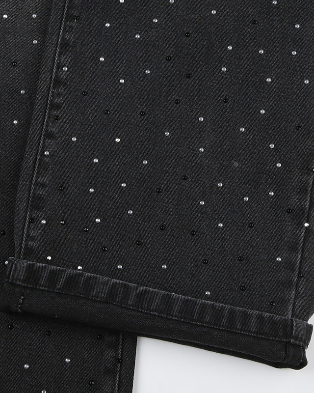 - Hot Diamond Craftsmanship: The fine hot diamond craftsmanship is embellished on the pants, which not only adds visual appeal, but also shows the beauty of the craftsmanship details, highlighting quality and personality.