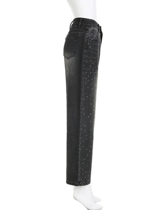 Retro Hot Diamond Loose Wide-Leg Low-Waist Denim Drape Casual Pants