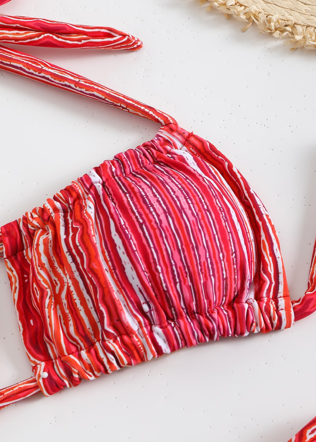 Riviera Charm Cutout One-Piece Swimsuit brings a touch of Mediterranean allure with its intricate paisley print and effortless design. The ruched top features a chic keyhole cutout, offering a flattering silhouette with adjustable tie straps for a custom fit. High-cut sides elongate the legs, while the soft stretch fabric ensures comfort and a sculpted look. Perfect for yacht getaways, sun-drenched beaches, or poolside lounging, this swimsuit blends vibrant style with a sophisticated edge.