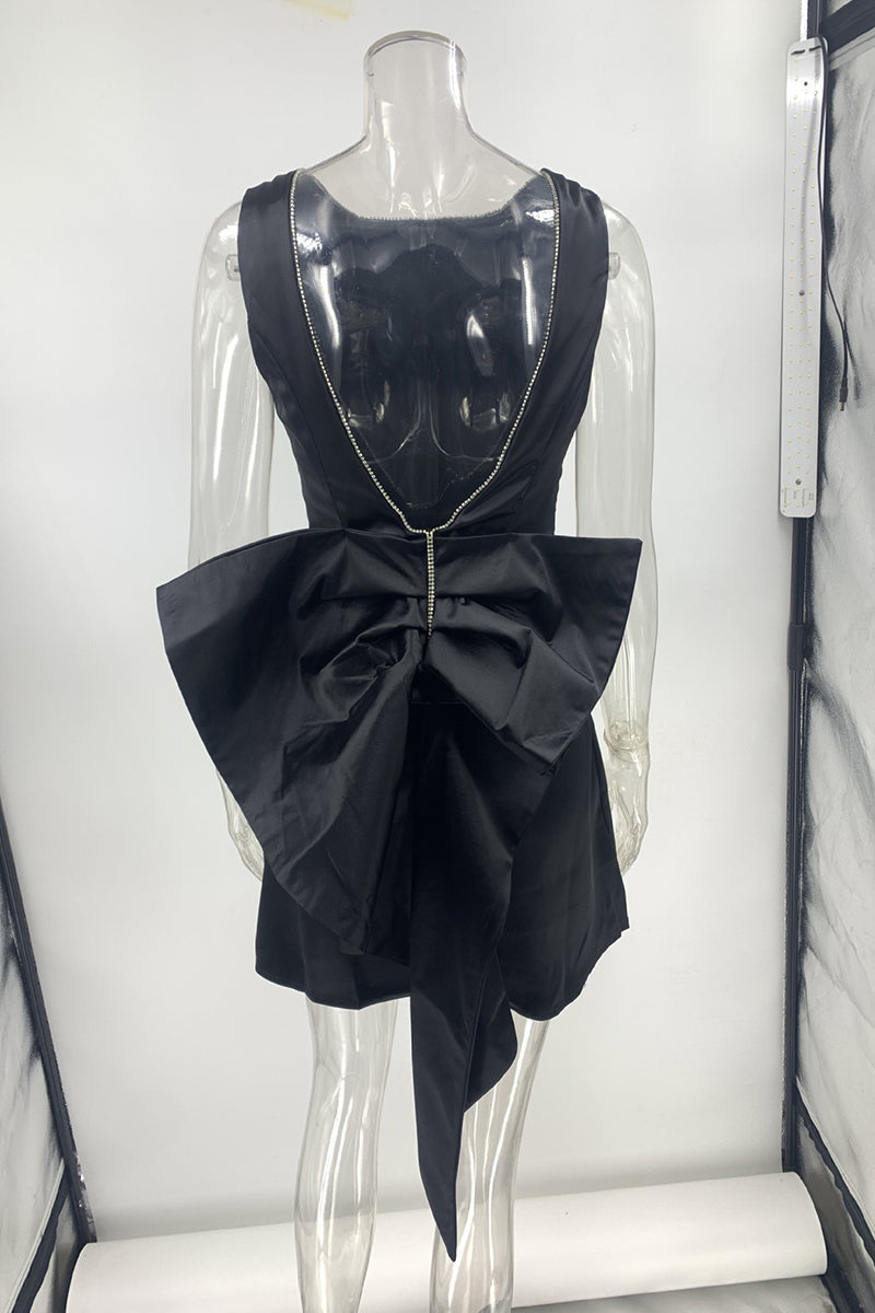 Sexy Party Backless Bow Decor O Neck Evening Dresses