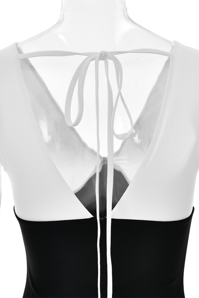 Sexy Prom Lace Up Contrast V Neck Evening Dresses