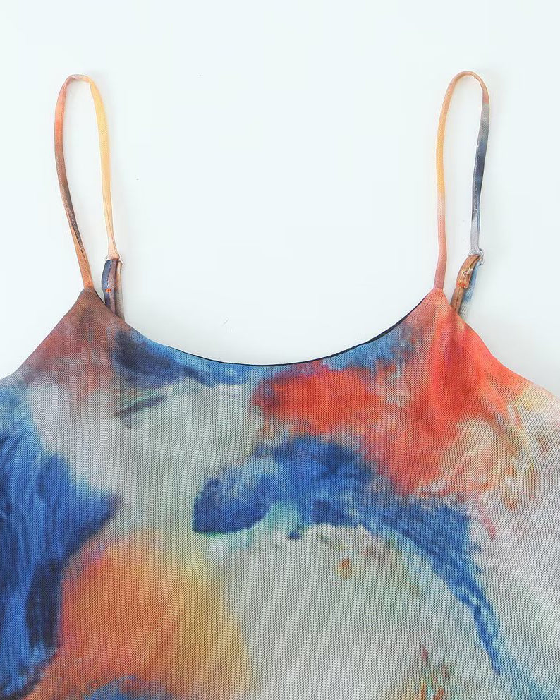 Silk Printed Long Slim Fit Suspender Dress