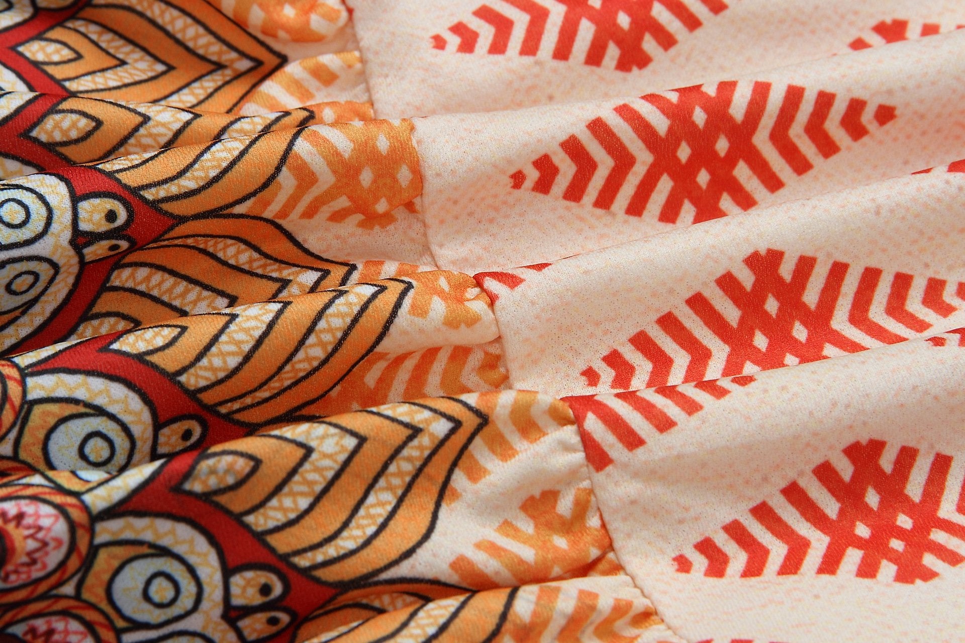 Spring And Summer Fashion Retro V-Neck Print Short Sleeves Mini Dress