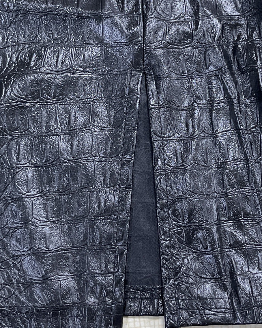 Straight Neck Strapless Slit Leather Dress