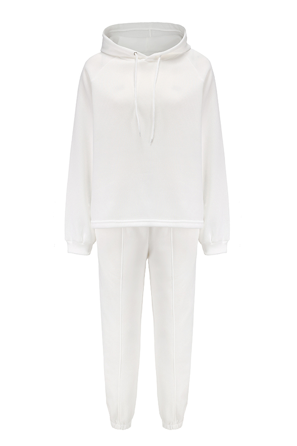 Street Sportswear Solid Patchwork Draw String Hooded Collar Long Sleeve Two Pieces(5 Colors)