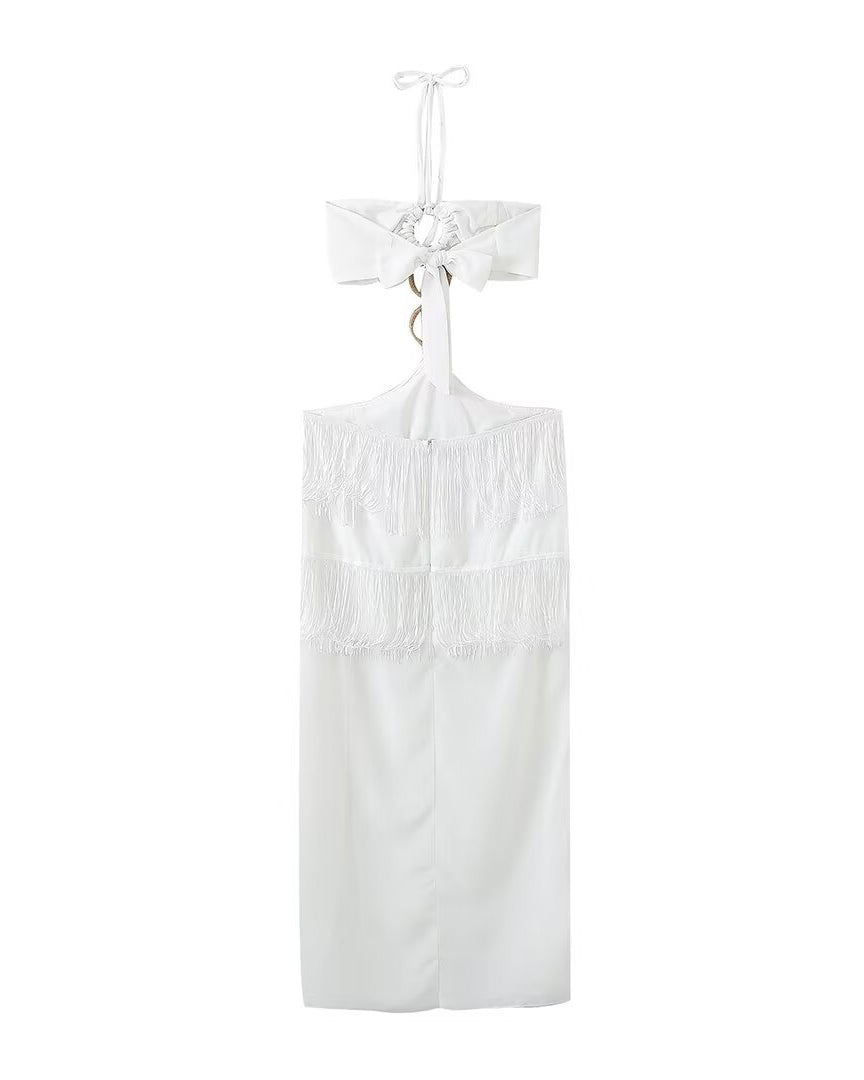 Tassel Embellished Strapless Long Dress