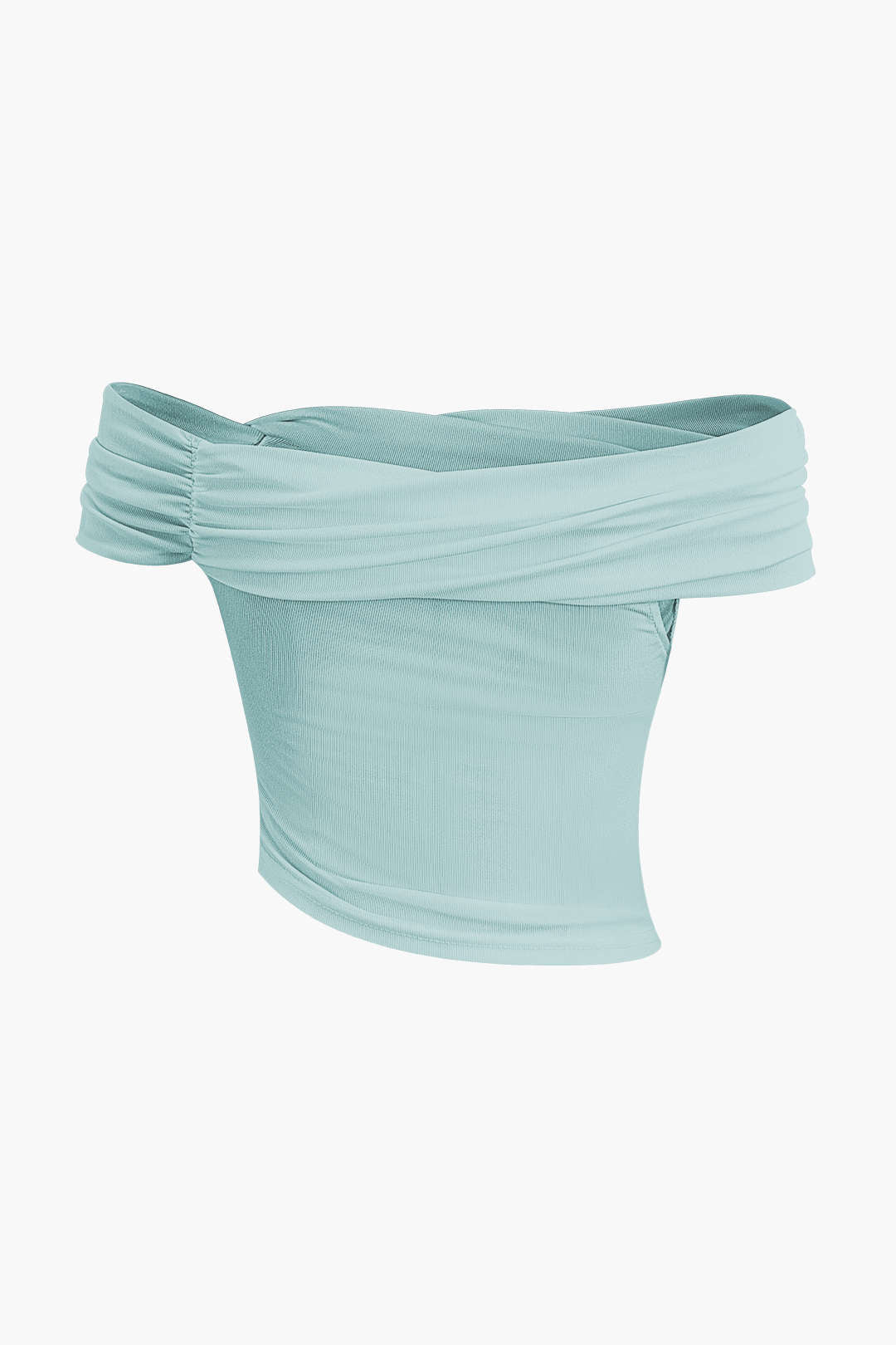 Vintage Off Shoulder Asymmetric Short Sleeve Blouse