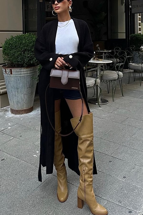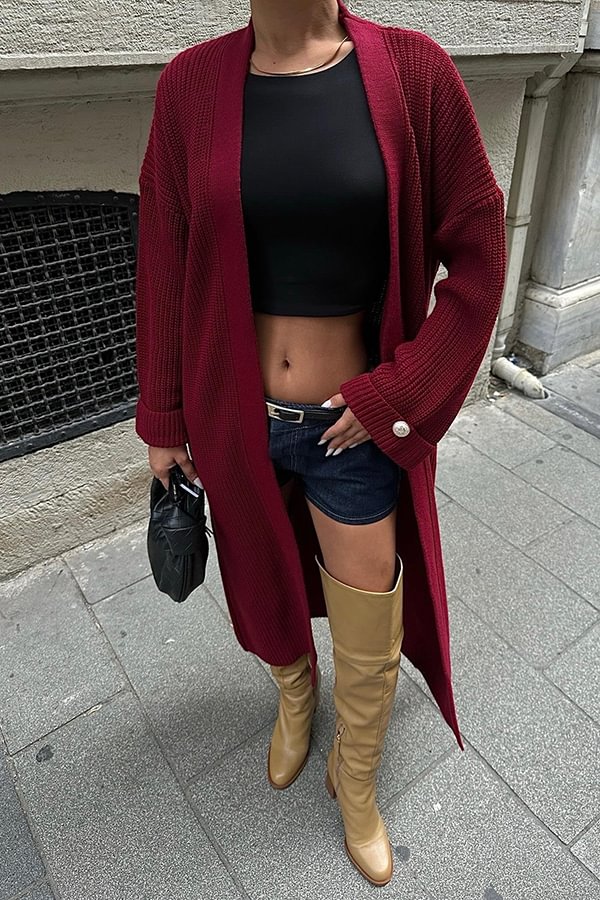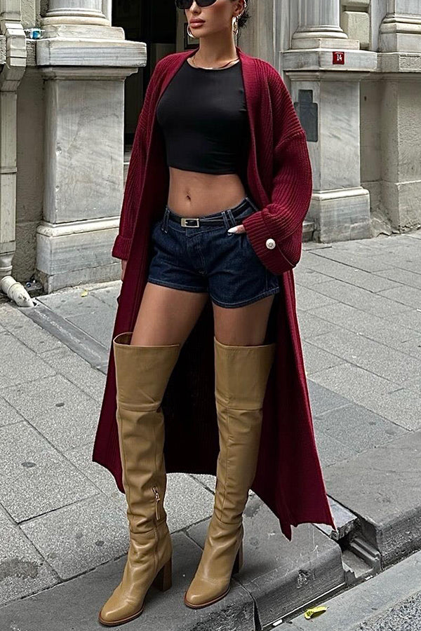 Warm Harvest Knit Button Detail Belted Duster Maxi Cardigan