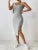 Women Summer Style Knitted Suspender Dress Lady Sleeveless Square Collar Side Slit Skirt Dress Vestidos