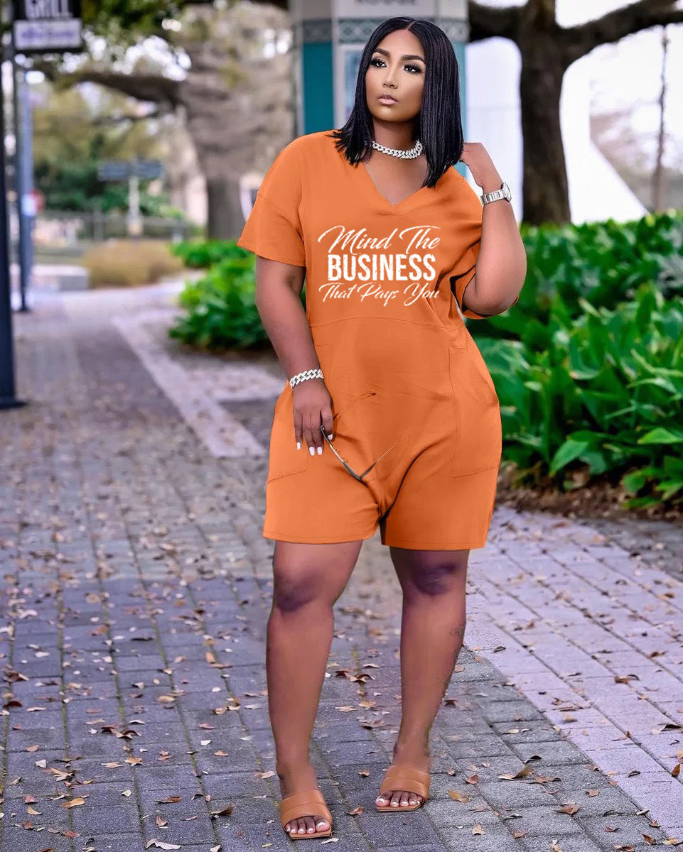 Women Wear V neck Loose Romper Letter Graphic Pattern Printing